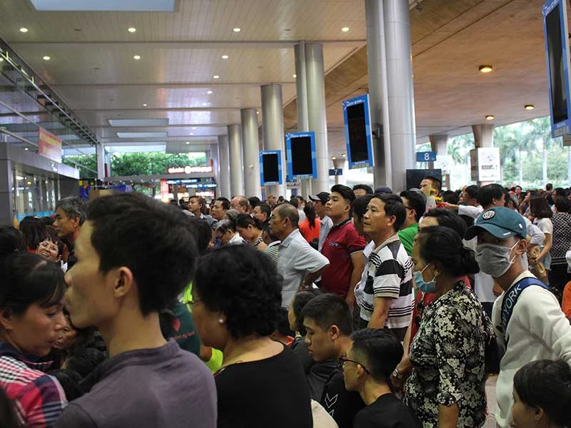 Nhà ga sân bay Tân Sơn Nhất quá tải. Ảnh: Hồng Trâm