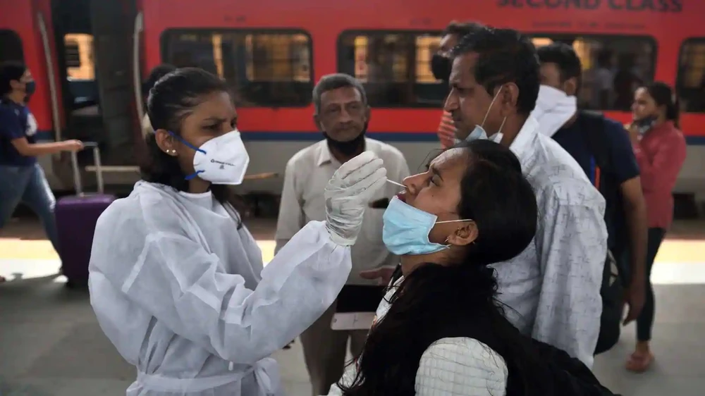 Một điểm xét nghiệm nhanh COVID-19 tại một nhà ga tàu hỏa tại TP Mumbai, bang Maharashtra (Ấn Độ). Ảnh: HT MEDIA (ẤN ĐỘ)