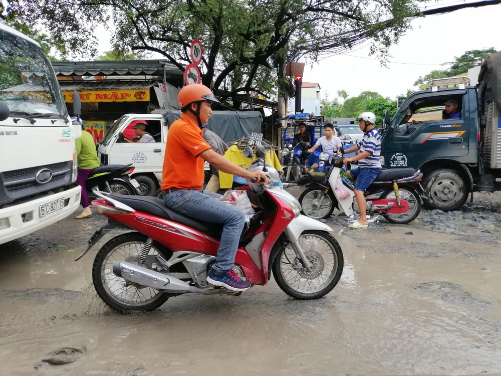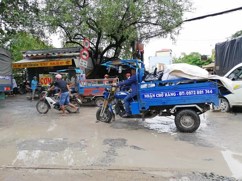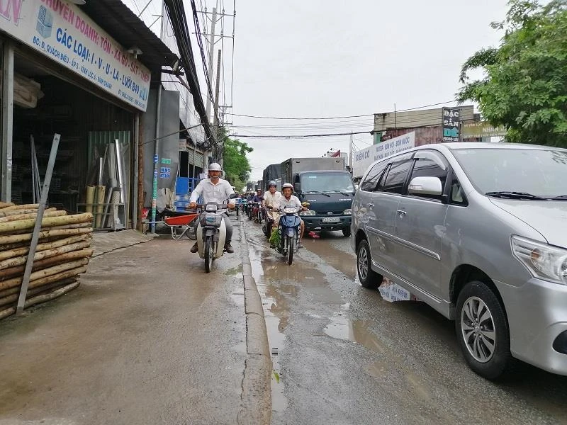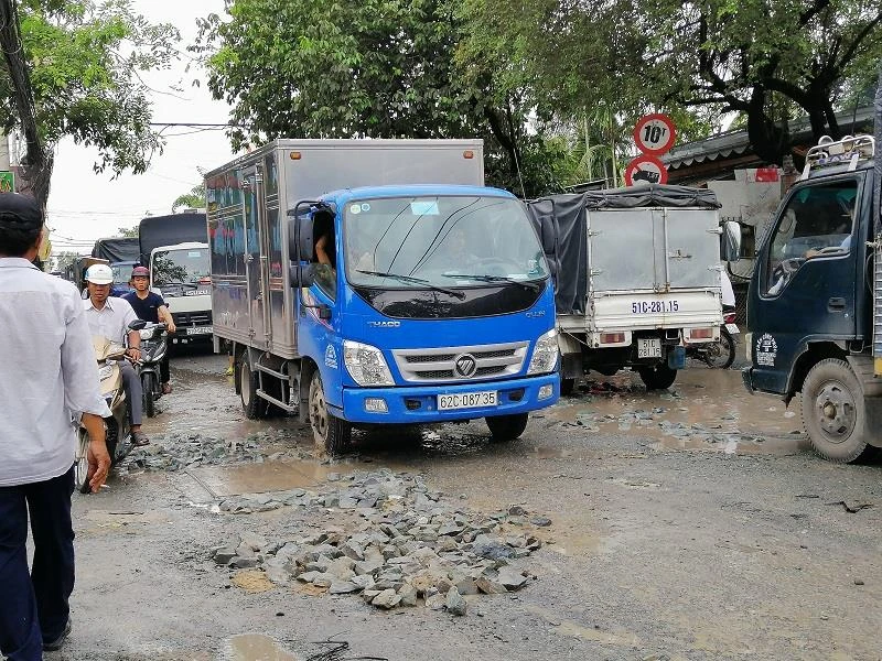 Đoạn đường này thường xuyên tắc nghẽn giao thông do lưu lượng xe tải đi lại cao, khiến mặt đường nhanh chóng xuống cấp, hư hỏng.