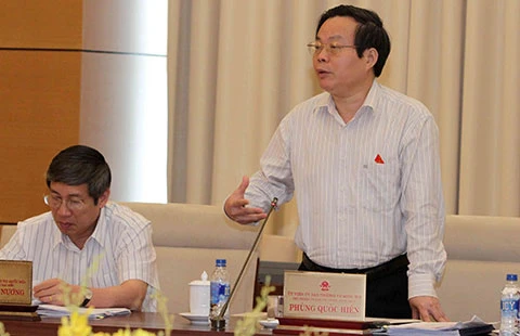Chủ nhiệm Ủy ban Tài chính Ngân sách Phùng Quốc Hiển đặt nhiều câu hỏi xung quanh dùng kinh phí ở đâu để thực hiện các đề án thành lập, mở rộng đô thị. Ảnh: TTXVN