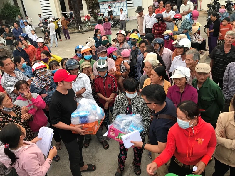 Mỗi phần quà gồm nhu yếu phẩm và 500.000 đồng tiền mặt. Đây là hai tỉnh chịu thiệt hại nặng nhất sau bão số 9.