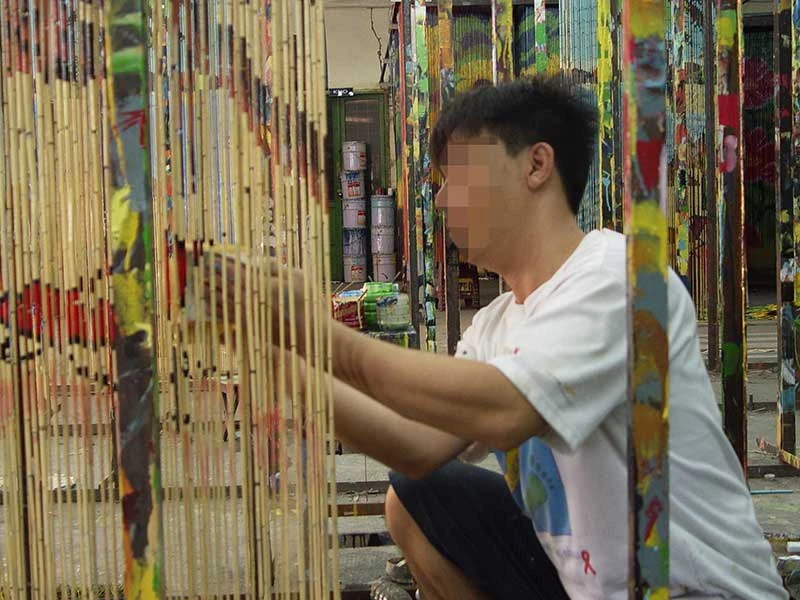 Học viên cai nghiện đang sản xuất mành trúc trong một cơ sở tại TP.HCM. Ảnh: HTD