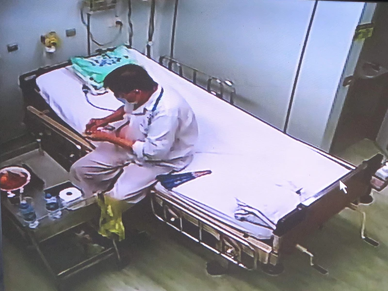 Bệnh nhân K. (Việt kiều 73 tuổi) trong phòng điều trị ở BV Bệnh nhiệt đới. Ảnh: HL