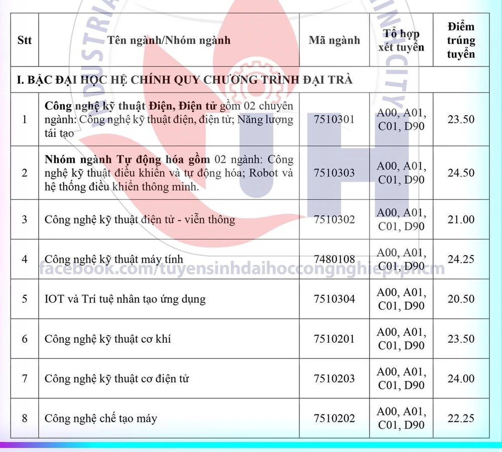 Theo công bố của Trường ĐH Công nghiệp TP.HCM, năm nay điểm chuẩn của các ngành đào tạo dao động từ 17,5 đến 26 điểm.