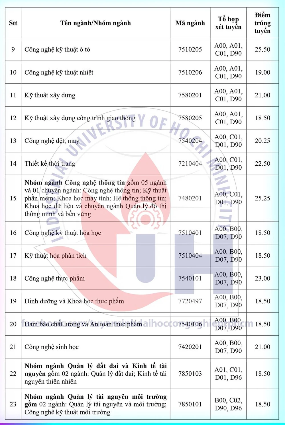Trường ĐH Tài nguyên và Môi trường TP.HCM cũng đã công bố điểm chuẩn năm 2021.