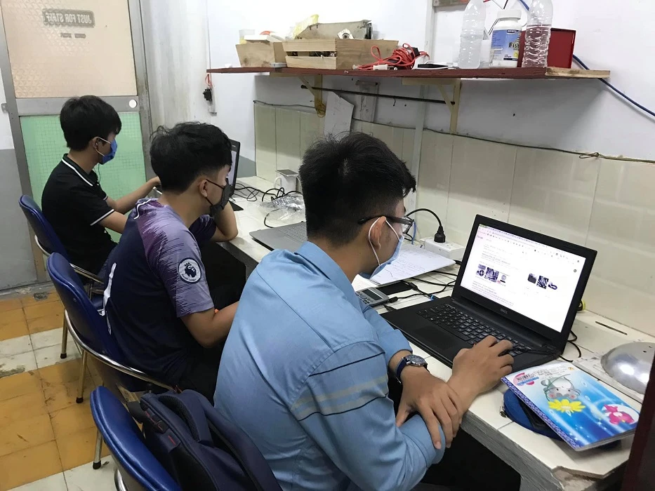 Sinh viên Trường ĐH Sư phạm kỹ thuật TP.HCM trong một giờ tự học trực tuyến. Ảnh: ĐHSPKT