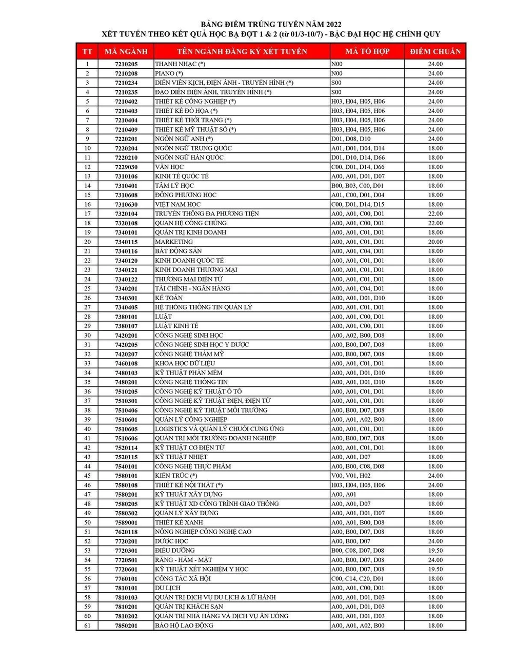 Trường cũng lưu ý, riêng các ngành thuộc khối ngành sức khỏe và ngành Giáo dục mầm non áp dụng theo quy định về ngưỡng đảm bảo chất lượng đầu vào của Bộ GD&ĐT. Đặc biệt, ở các ngành có tổ hợp môn năng khiếu, thí sinh cần tham dự kỳ thi năng khiếu do trường tổ chức hoặc nộp kết quả thi từ trường đại học khác để hoàn tất thủ tục xét tuyển.