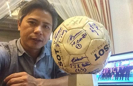 Anh Minh Dofilm sau khi mua quả bóng 8 triệu đồng đã tiếp tục xin chữ ký và đấu giá trên mạng để có thêm nguồn ủng hộ cho anh Minh Hùng.