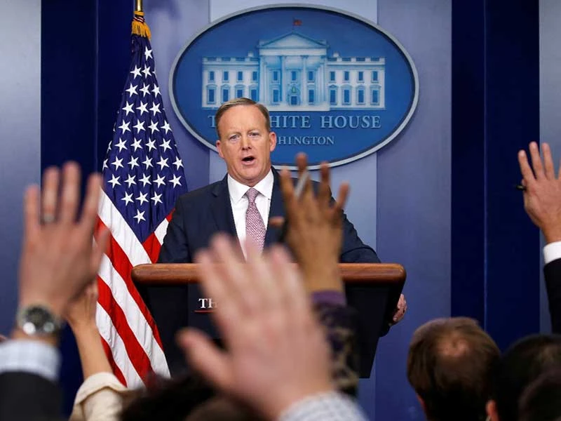 Thư ký báo chí Sean Spicer trong một cuộc họp báo thường kỳ tại Nhà Trắng. Ảnh: REUTERS