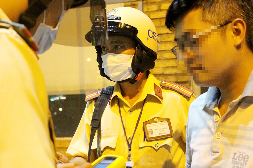 Trong hơn một giờ đồng hồ, tổ công tác chỉ phát hiện một trường hợp vi phạm nồng độ cồn. Đó là anh Nguyễn Bằng Q. (33 tuổi, ngụ Nghệ An) với nồng độ cồn lên đến 0.76 mg/lít khí thở.