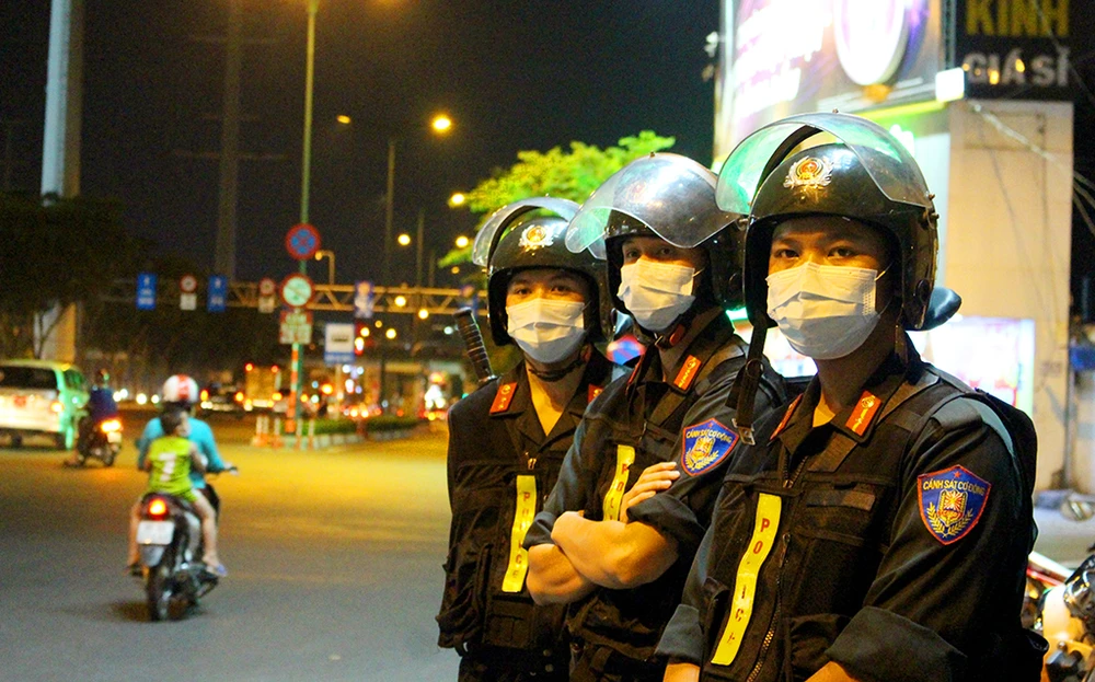 Cả lực lượng CSCĐ cũng đeo khẩu trang. Ảnh: L.THOA