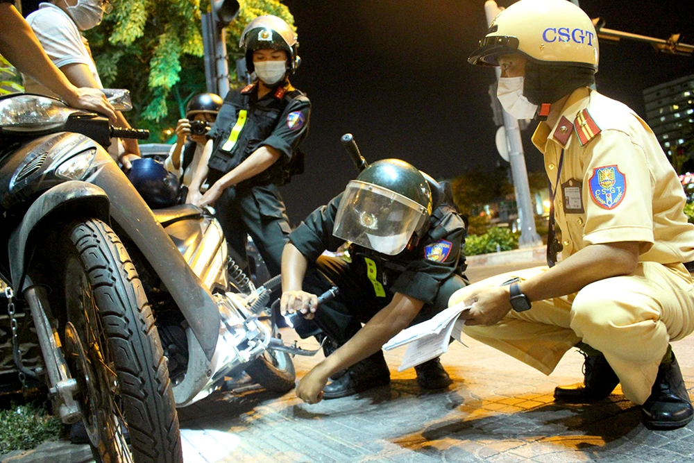 Khoảng 8 giờ 30 phút, năm CSGT đã phối hợp với năm cảnh sát cơ động (CSCĐ) dừng nhiều xe máy có biểu hiện nghi vấn để kiểm tra nồng độ cồn.