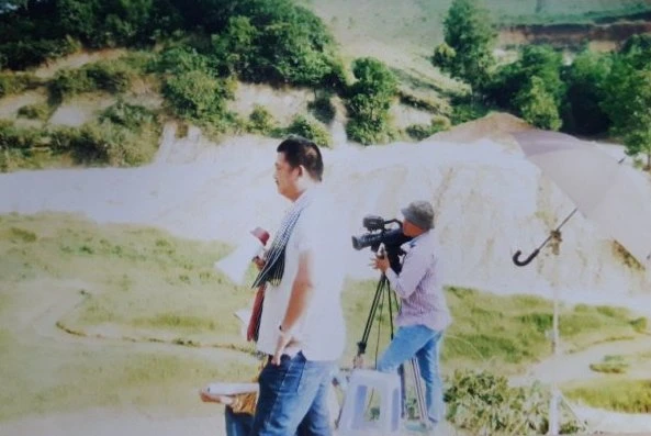 Đạo diễn Đặng Minh Quang (đứng chỉ tay) đang chỉ đạo một cảnh quay.