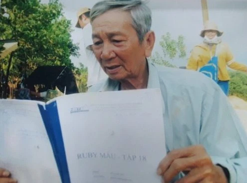 Tác giả bài viết - diễn viên Trần Lương tranh thủ đọc kịch bản.