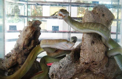 Tiêu bản rắn hổ mây tại trại rắn Đồng Tâm. Ảnh: TRẦN VŨ