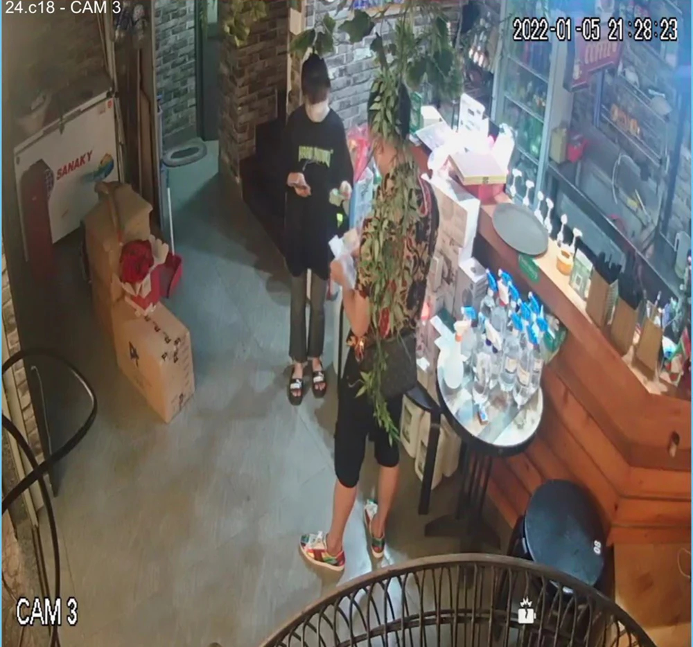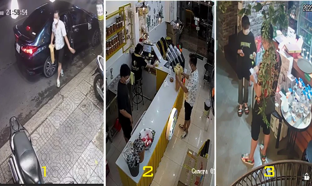 Hình ảnh từ camera an ninh cho thấy nam thanh niên tới lừa ở tiệm cà phê quận Tân Bình (hình 3), có ngoại hình, và đôi giày giống với ở vụ lừa tại quận 1. Ảnh chụp từ clip camera an ninh