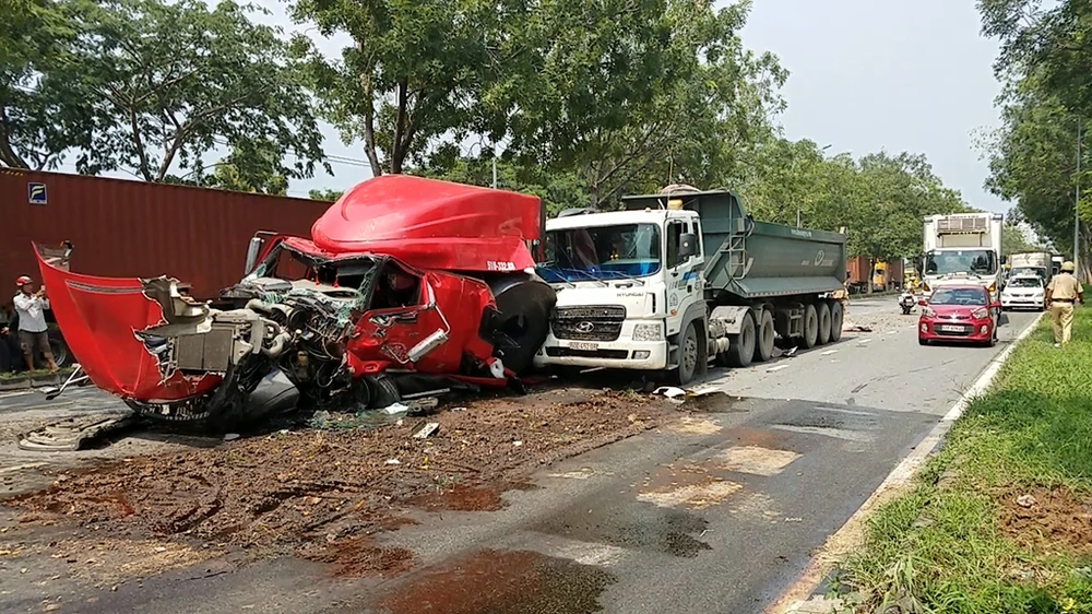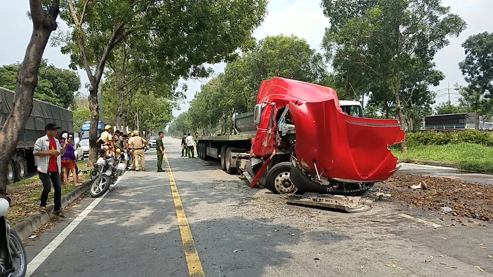 Tại hiện trường, hai phương tiện hư hỏng nặng phần đầu; trong đó xe đầu kéo chở cuộn sắt biến dạng hoàn toàn cabin. Tài xế và phụ xe kẹt bên trong, người dân phải mất nhiều thời gian mới giải cứu cả hai ra ngoài. Tài xế được đưa vào bệnh viện cấp cứu nhưng đã tử vong.