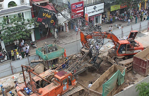 Theo đó, khoảng 16 giờ 30, một cần cẩu đang thi công trên dự án đường sắt đô thị Nhổn - ga Hà Nội (đoạn qua quận Cầu Giấy) bất ngờ đè bẹp nhà dân khiến hai người bị thương.