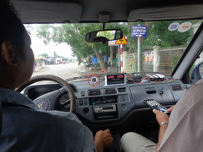 Việc gắn camera (vòng tròn trong hình) trên xe học lái sẽ được mở rộng ra ở tất cả trường, cơ sở đào tạo lái xe. Ảnh: LƯU ĐỨC