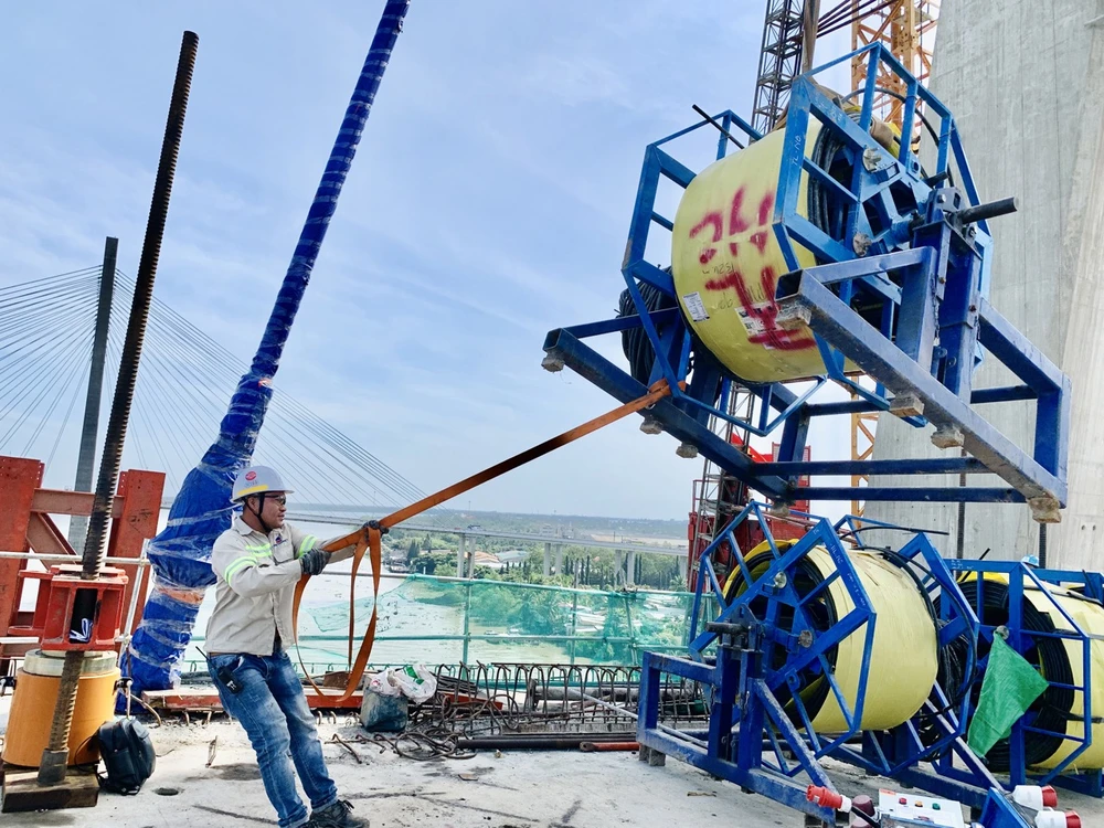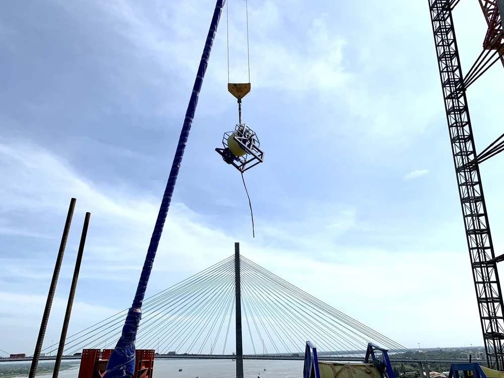 Ống dẫn hướng đã chuyển về công trường. 61,8% khối lượng cáp dây văng, phụ kiện đi kèm đã về công trường, khối lượng còn lại sẽ chuyển về trong tháng 1.