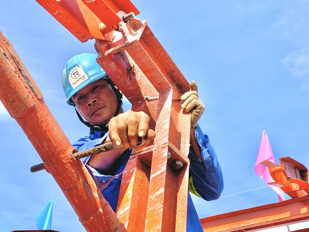 Anh Hoàng Đăng Hậu - Kỹ thuật phụ trách thi công (Công ty cổ phần Trung Nam E&C) cho biết hiện công trường có 30 công nhân và lực lượng kỹ sư, vận hành làm việc xuyên Tết để hoàn thành đốt cuối cùng của trụ T16.