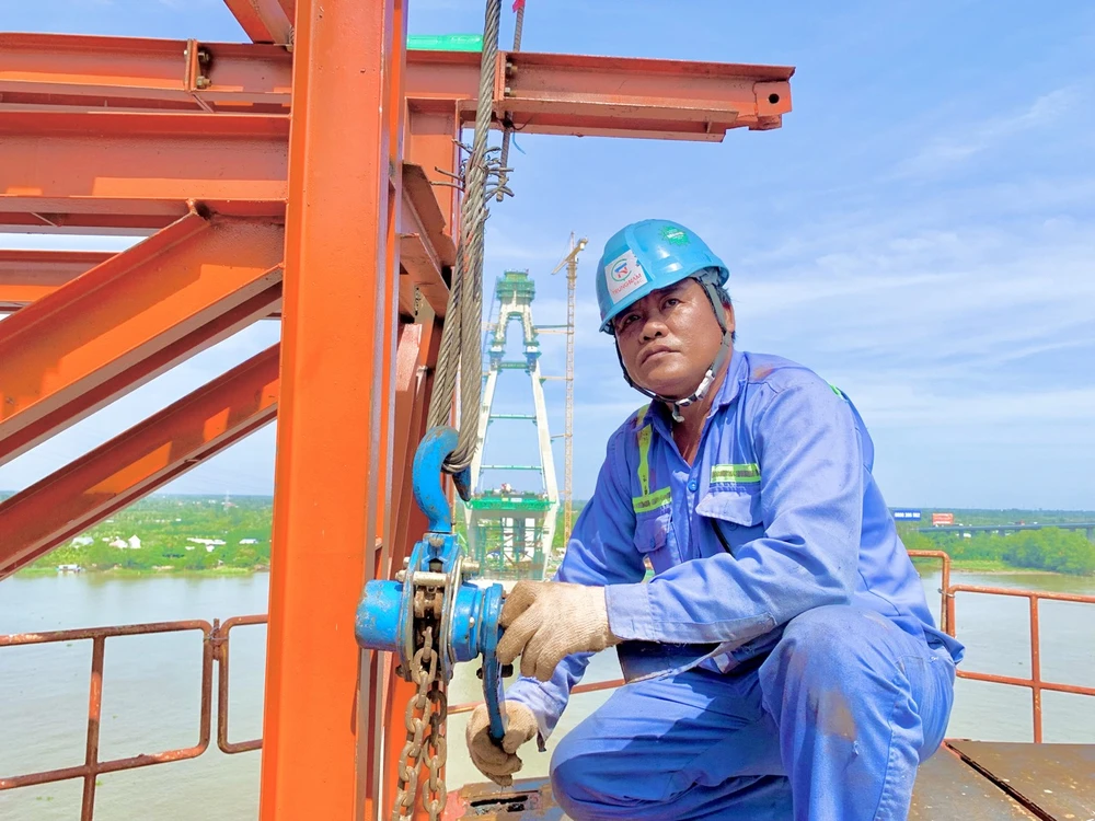 | Công nhân vẫn miệt mài làm việc trên công trường cầu Mỹ Thuận 2 |