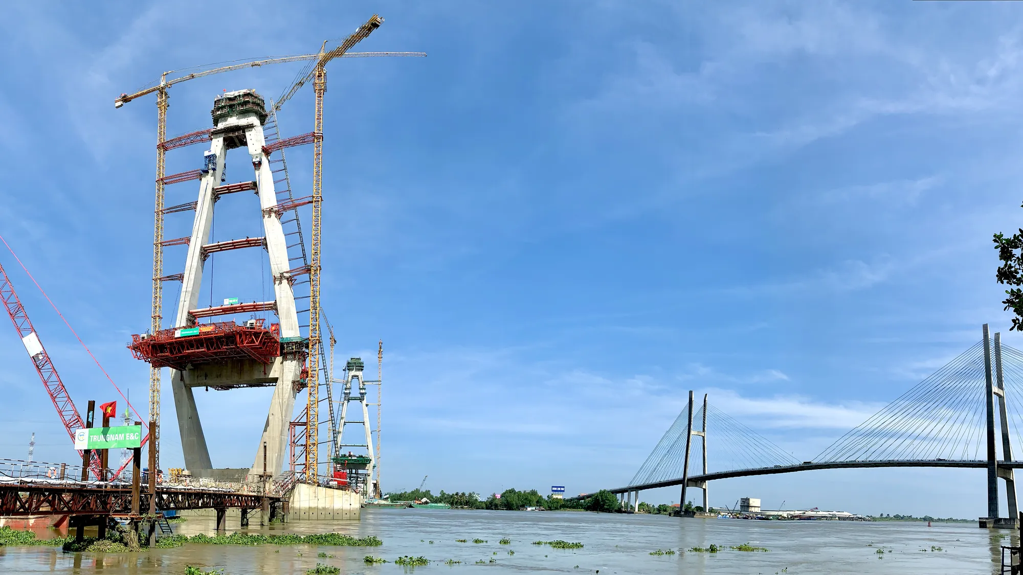 Nhịp chính dây văng cũng đã được thi công từ 19-8-2022 và dự kiến 30-10-2023 sẽ hoàn thành 16 đốt đúc nhịp chính trên mỗi trụ tháp.