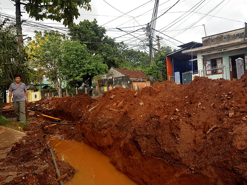 Những ngày gần đây, khi các công nhân tiến hành đào hệ thống cống nước dài khoảng 100 m, sâu khoảng 1 m nhưng không có biện pháp tính toán trước khiến nhiều người không thể ra khỏi nhà. Ngoài ra, trong lúc đang thi công, trời đổ mưa to nên doanh nghiệp ngừng thi công khiến người dân gần như bị cô lập, ảnh hưởng đến sinh hoạt hằng ngày.