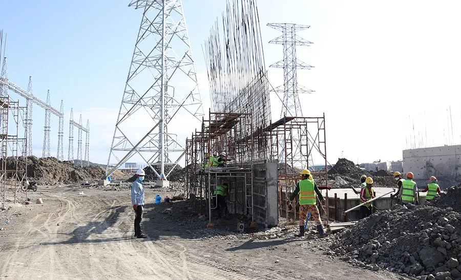 Các đơn vị thi công xuyên Tết tại công trường TBA 500kV Vân Phong (tỉnh Khánh Hòa). Ảnh: XT