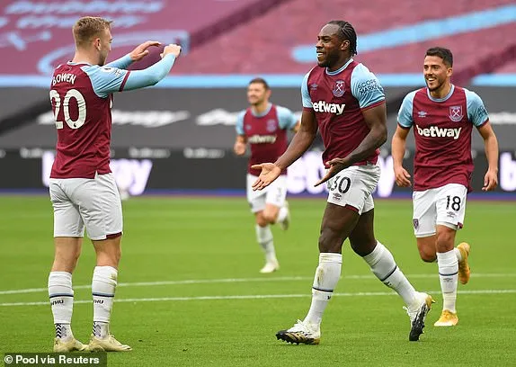 Cầu thủ West Ham ăn mừng bàn thắng mở tỉ số 1-0. ẢNH: REUTERS