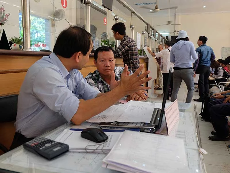 Cán bộ chức năng đang hướng dẫn người dân thủ tục cấp phép xây dựng. Ảnh: VH