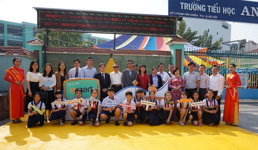 Sáng 14-1, lễ khánh thành dự án Tăng cường an toàn giao thông xung quanh trường học tại TP.HCMdo Ban An toàn Giao thông (ATGT) TP.HCM cùng Công ty Cổ phần Xã hội Trung tâm Tri thức cộng đồng tổ chức đã diễn ra tại trường tiểu học An Hội (quận Gò Vấp, TP.HCM).