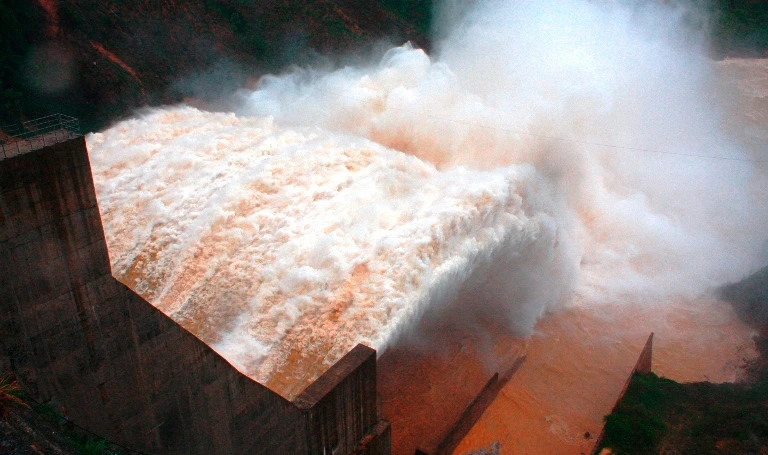 Cứ đến mùa nắng thì việc xung đột về môi trường nước giữa TP Đà Nẵng với thủyđiệnĐắkMi4 (trong ảnh: thủy điện Đắk Mi 4 xã nước vào mùa lũ nhưng lại gây hạn hán vào mùa khô cho TP Đà Nẵng). LÊ PHI