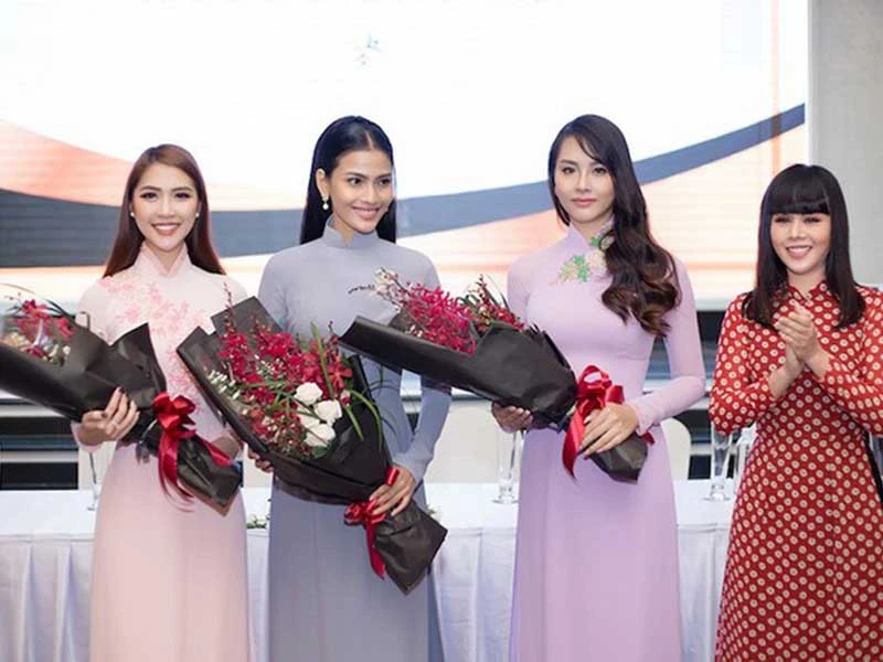 Tường Linh - Hoa hậu sắc đẹp châu Á, Trương Thị May - Á hậu các dân tộc và Thùy Trang - Hoa hậu biển Việt Nam (từ trái sang) làm đại sứ cho Quỹ Vì trẻ em. Ảnh: NHÂN PHAN