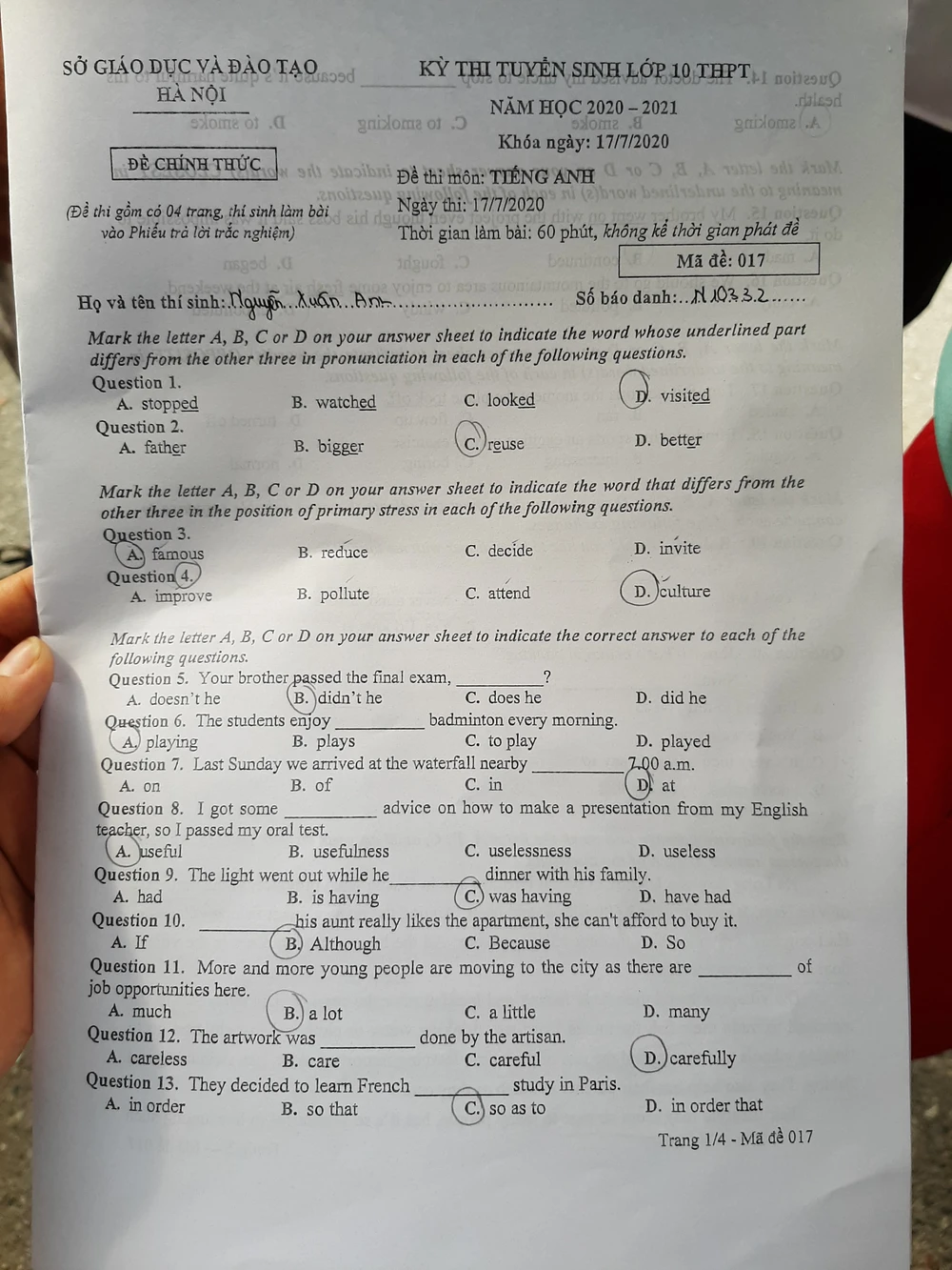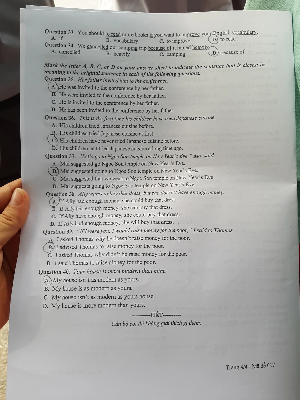 MÃ ĐỀ 107