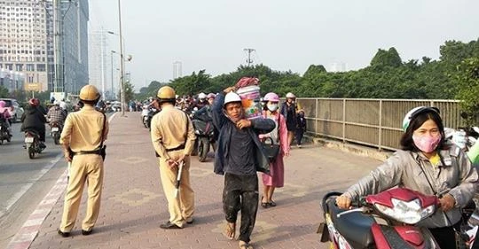 "Ngày nào cũng có người dân di chuyển ngược chiều qua đoạn đường khoảng 200 m này nên đơn vị đã phân công các anh em túc trực để xử lý các trường hợp vi phạm. Tuy nhiên, khi thấy có mặt CSGT thì người dân lại dắt xe máy qua để tránh bị phạt" - lãnh đạo Đội CSGT số 7 thông tin.