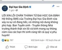 Được biết, sau hàng loạt tin nhắn phản cảm về chê điểm thi thấp, đại diện các tư vấn viên của Trường ĐH Gia Định đã gửi lời xin lỗi đến từng thí sinh.