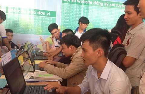 Tại Trường ĐH Bách khoa TP.HCM cũng diễn ra cảnh hàng ngàn thí sinh, phụ huynh chen lấn tiếp cận khu vực máy tính để đăng ký xét tuyển. Tuy nhiên, do có nhiều thí sinh đăng nhập cùng lúc nên các giao dịch không thành công. Có mặt tại khu vực này, nhiều thí sinh và phụ huynh bày tỏ lo lắng về việc nộp hồ sơ xét tuyển quá đông khiến việc tiếp cận bộ phận tiếp nhận hồ sơ khó khăn. Tuy nhiên, có một bộ phận thí sinh tỏ ra thận trọng chưa nộp hồ sơ xét tuyển ngay vì cho rằng thời gian tiếp nhận hồ sơ xét tuyển kéo dài trong 20 ngày nên không quá lo lắng và có thể thăm dò thêm.