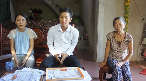 Em Bùi Đình Sơn cùng chị gái mồi côi cả cha lẫn mẹ đang sống với bà Nguyễn Thị Hồng (bà nội, thuộc diện hộ nghèo, bà đang bị một khối u ở lưng).