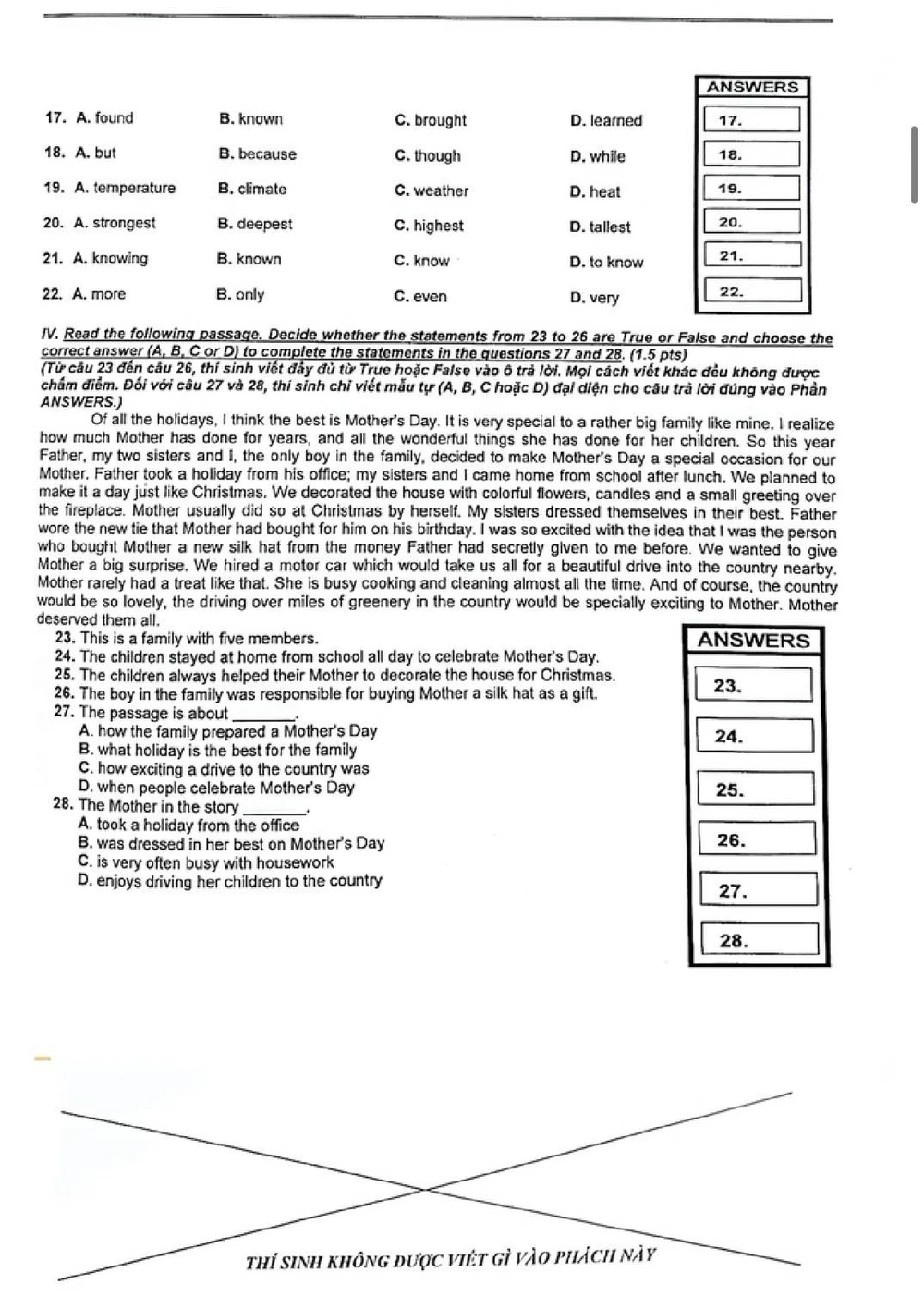 Trong đề khó nhất là phần word from. Thí sinh muốn làm được phần nào cần phải xem trước và sau đó có những từ gì để điền cho phù hợp. Lắt léo nhất là phần viết lại câu, tuy nhiên phần này em làm khá tốt.