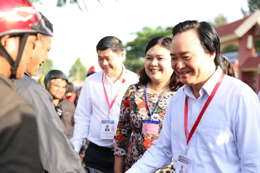 Nhiều thí sinh, phụ huynh và cán bộ coi thi khá bất ngờ khi lần đầu được lãnh đạo cao nhất ngành Giáo dục không quản ngại đường sá xa xôi đến thăm hỏi, động viên.
