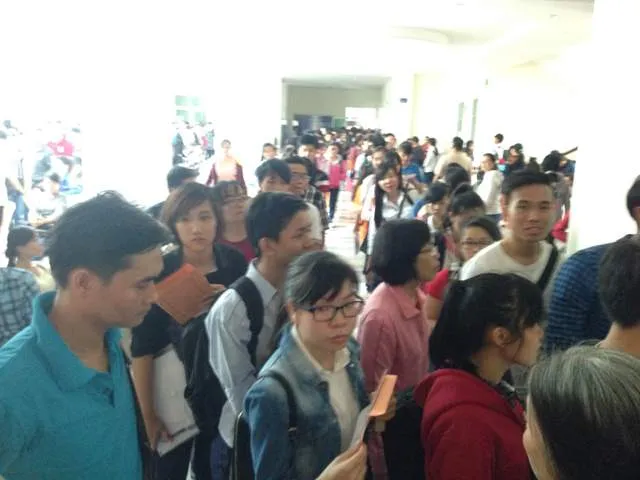 Tình cảnh tương tự, hai Trường Đại học Sư phạm TP.HCM và Đại học Sài Gòn cũng tăng đột biến, tính đến 11 giờ 30, số thí sinh nộp hồ sơ xét tuyển tại hai trường này vẫn kiên nhẫn xếp hàng để chờ đến lượt nộp hồ sơ.