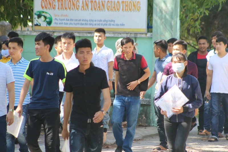 Các thí sinh làm thủ tục thi tại Quảng Nam chiều 21-6. Ảnh HT