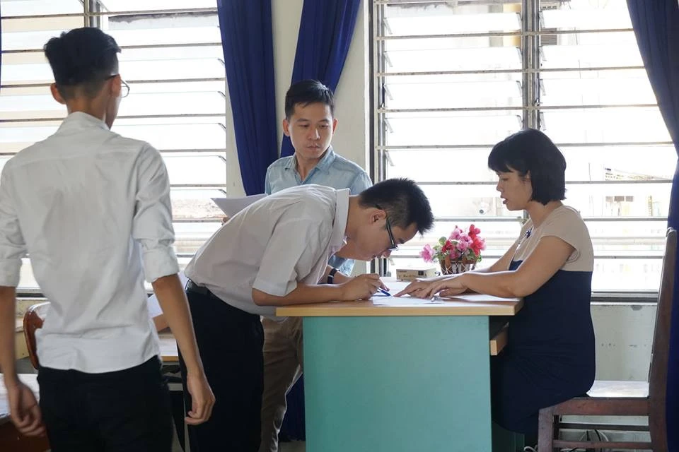 Kiểm tra thông tin trên hồ sơ dự thi. Ảnh: Phi Hùng