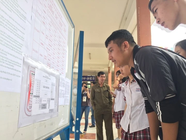 Tại điểm thi trường THPT Trần Phú, Đà Nẵng có nhiều thí sinh đến trễ trong buổi chiều hôm nay và lo lắng khi đến cuối buổi vẫn chưa xác định được phòng thi của mình.