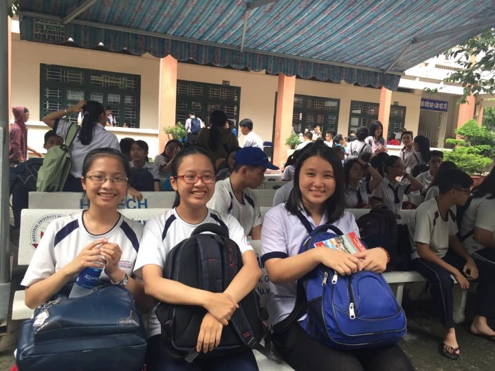 Tại TP.HCM, thời tiết tương đối mát mẻ nên thí sinh đến các điểm thi khá vui vẻ, thoải mái. Điểm thi Trường THPT Nguyễn Hữu Huân (quận Thủ Đức), dù chưa đến giờ nhưng có khá đông học sinh đến tập trung.
