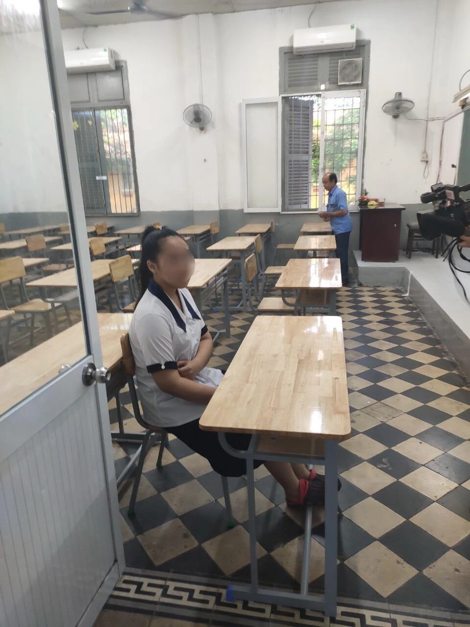 Em T. được bố trí chỗ ngồi ổn định tại phòng thi. Ảnh: A.V