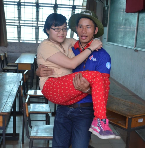 Đây là trường hợp thí sinh đặc biệt, bị bại não từ nhỏ, dẫn đến khuyết tật vận động, đi lại khó khăn. Theo quy định mới của Bộ, Thanh Vy được miễn thi tốt nghiệp.