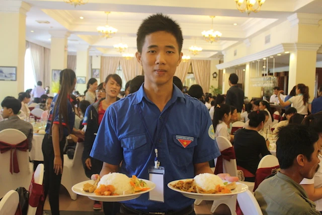 Bữa cơm miễn phí cho thí sinh tại khách sạn 4 sao. Ảnh: Nguyễn Do