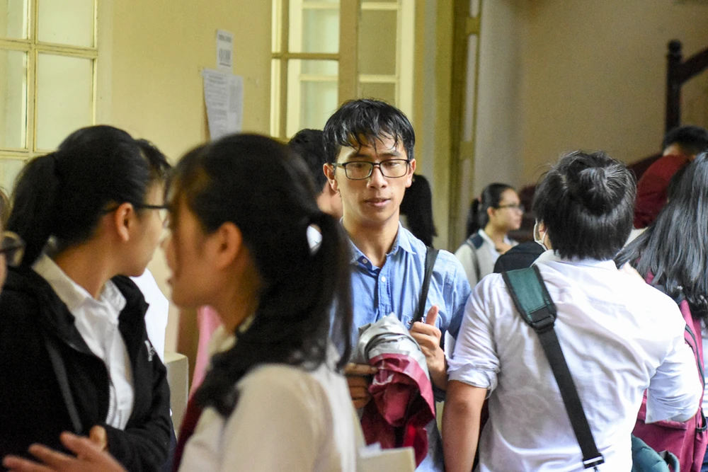 Không khí bên ngoài các phòng thi trước giờ làm thủ tục. Ảnh: NGUYỄN DO